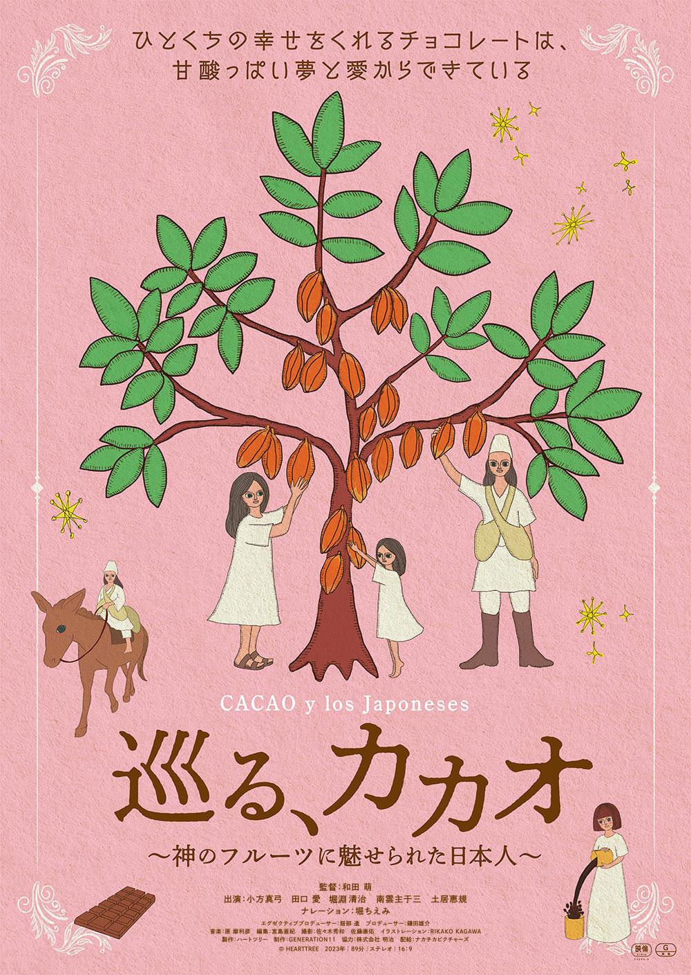 ナレーションを担当するのは、歌手でタレントの堀ちえみ。大のカカオ、チョコレート好きだと公言している堀は、「チョコレートは簡単に食べられるスイーツだと思っていましたが、地球の裏側で頑張っている方がいるんだということを感じて、これからは感謝をしながら“嗜む”、“戴く”ようにしていきたい」と語り、本作を通じて、カカオが無限の可能性を秘めた果物であると知られていくことに期待を寄せる。